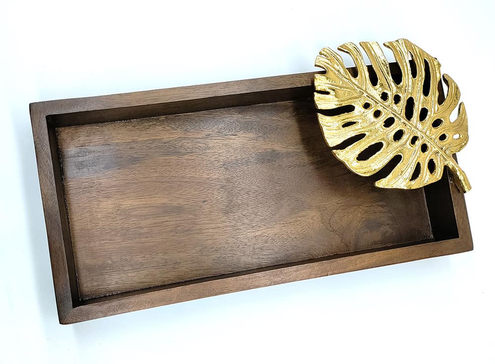 Classy Wooden Tray with Leaf Design Brooch